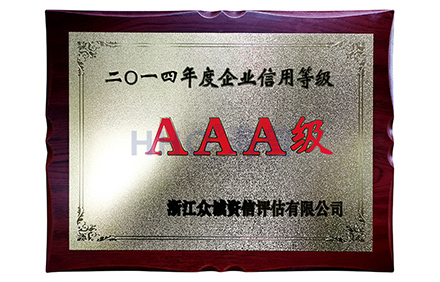 二0一四年度 企業(yè)信用等級(jí)AAA級(jí)